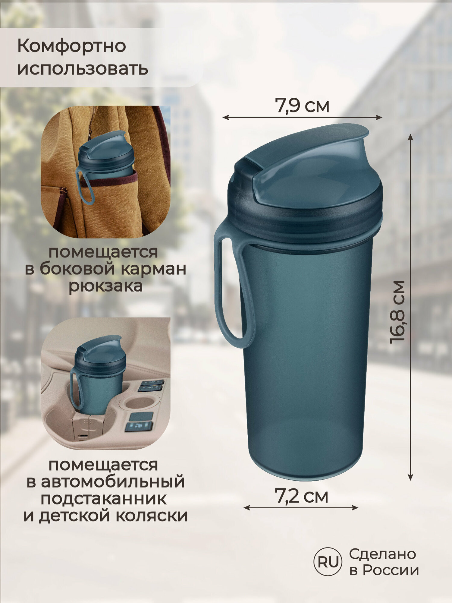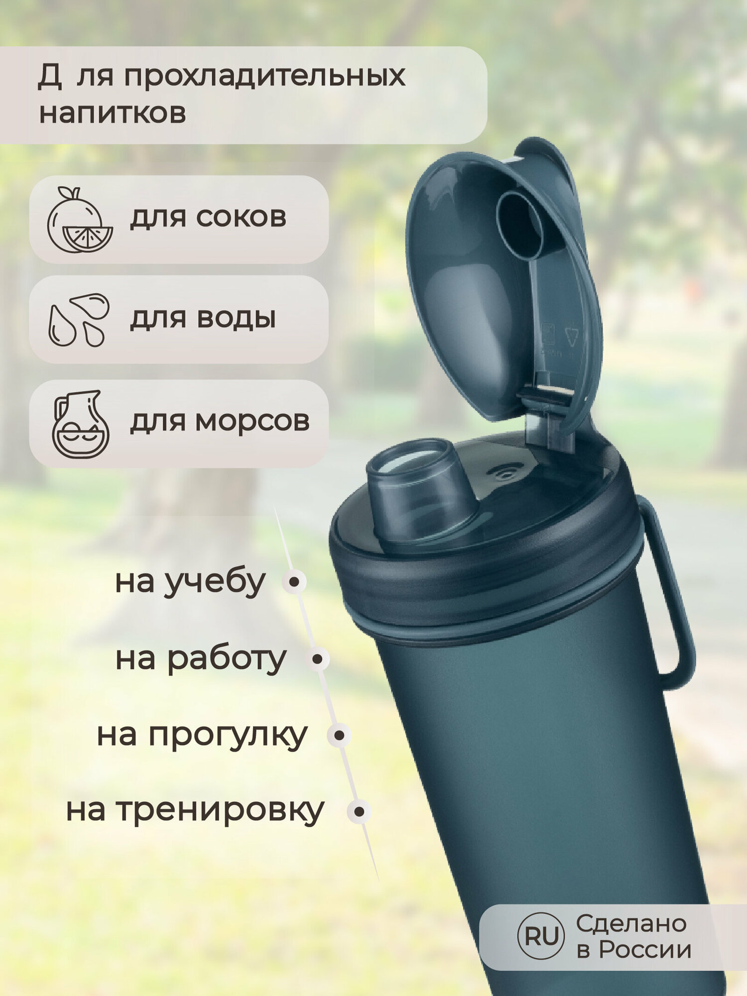 Бутылка для холодных напитков с петлей и крышкой400 мл (синий) интересное: