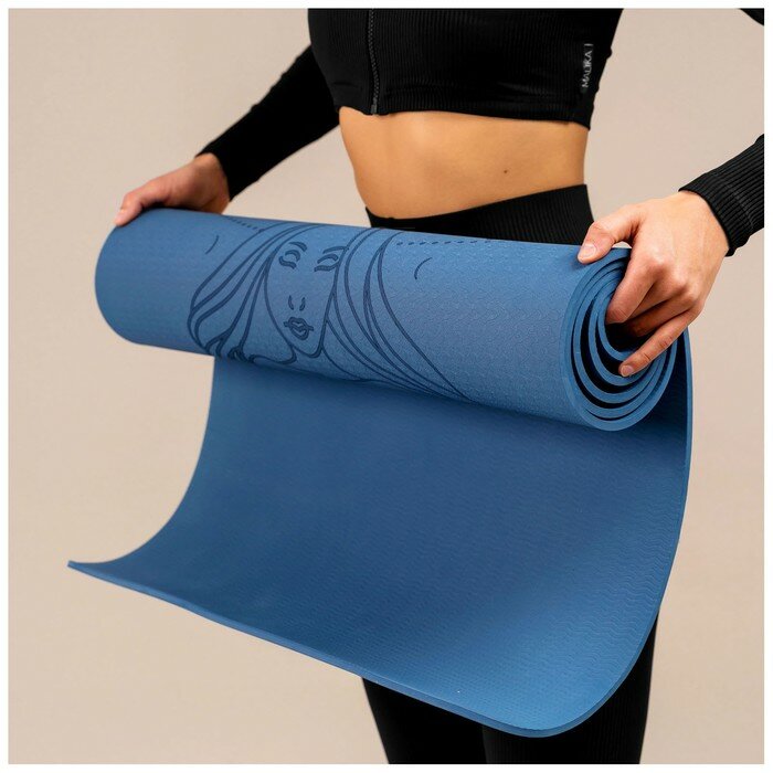 Коврик для йоги, 183 х 61 х 0.6 см, цвет синий