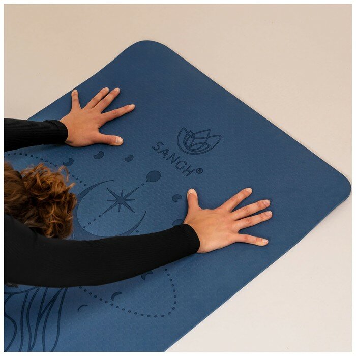 Коврик Sangh " Moon", для йоги, размер 183 х 61 х 0,6 см, цвет синий