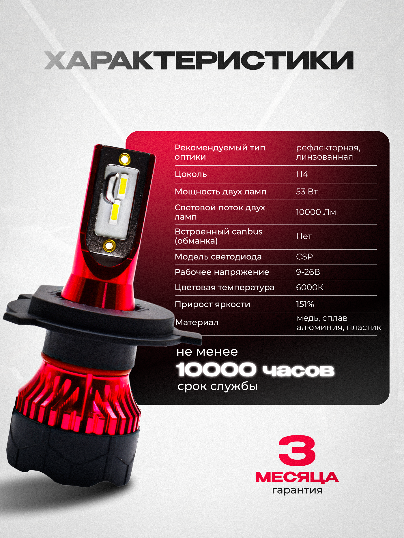 Светодиодные лампы Avto Vibe LED-K5, H4, 6000K, холодный белый свет интересное: