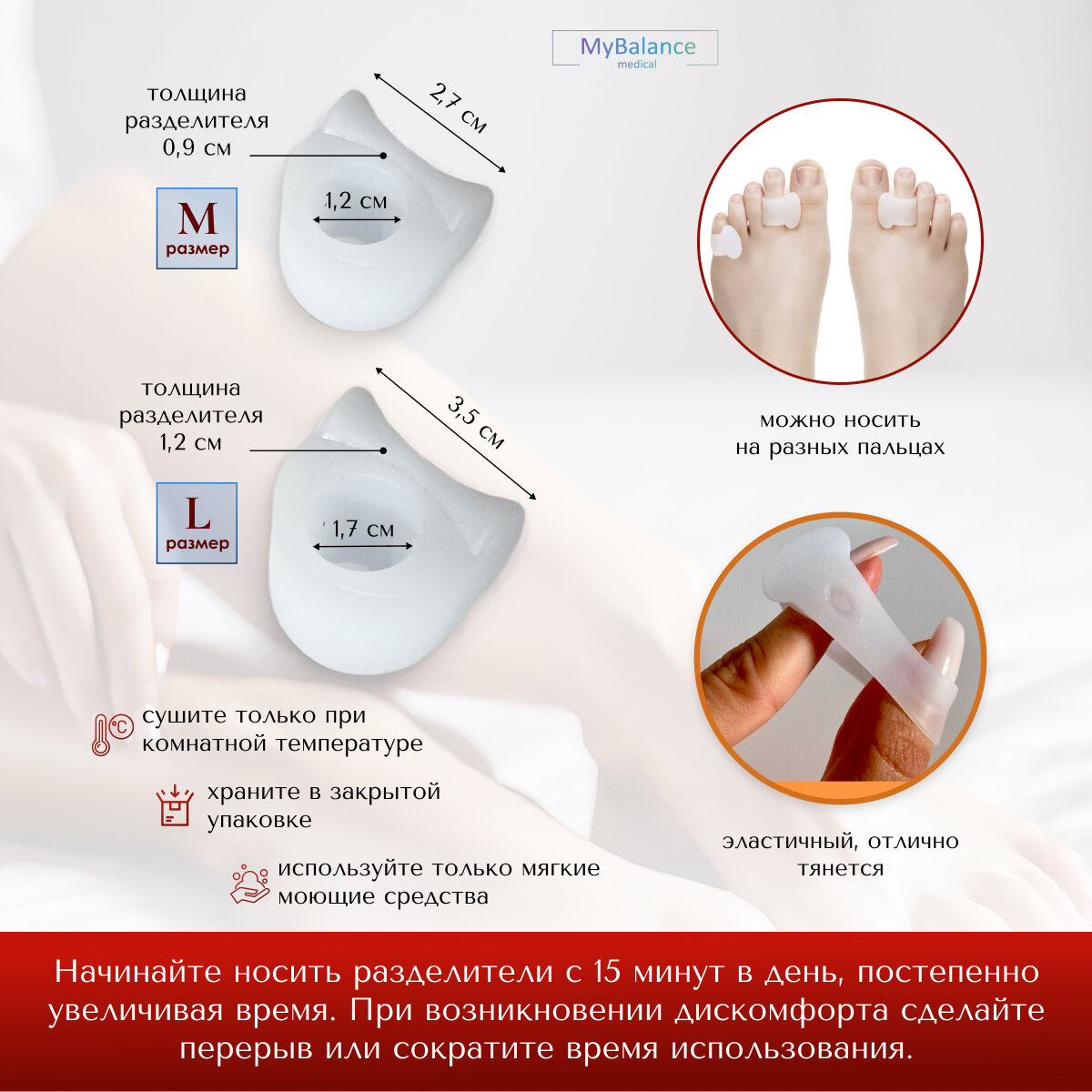 Ниже Вы можете прочитать отзывы на Корректоры пальцев MyBalance, силиконовые, цвет белый, размер L, 2 шт, ознакомится с подробными характеристиками, посмотреть интересные обзоры и фотографии на Корректоры пальцев MyBalance, силиконовые, цвет белый, размер L, 2 шт.