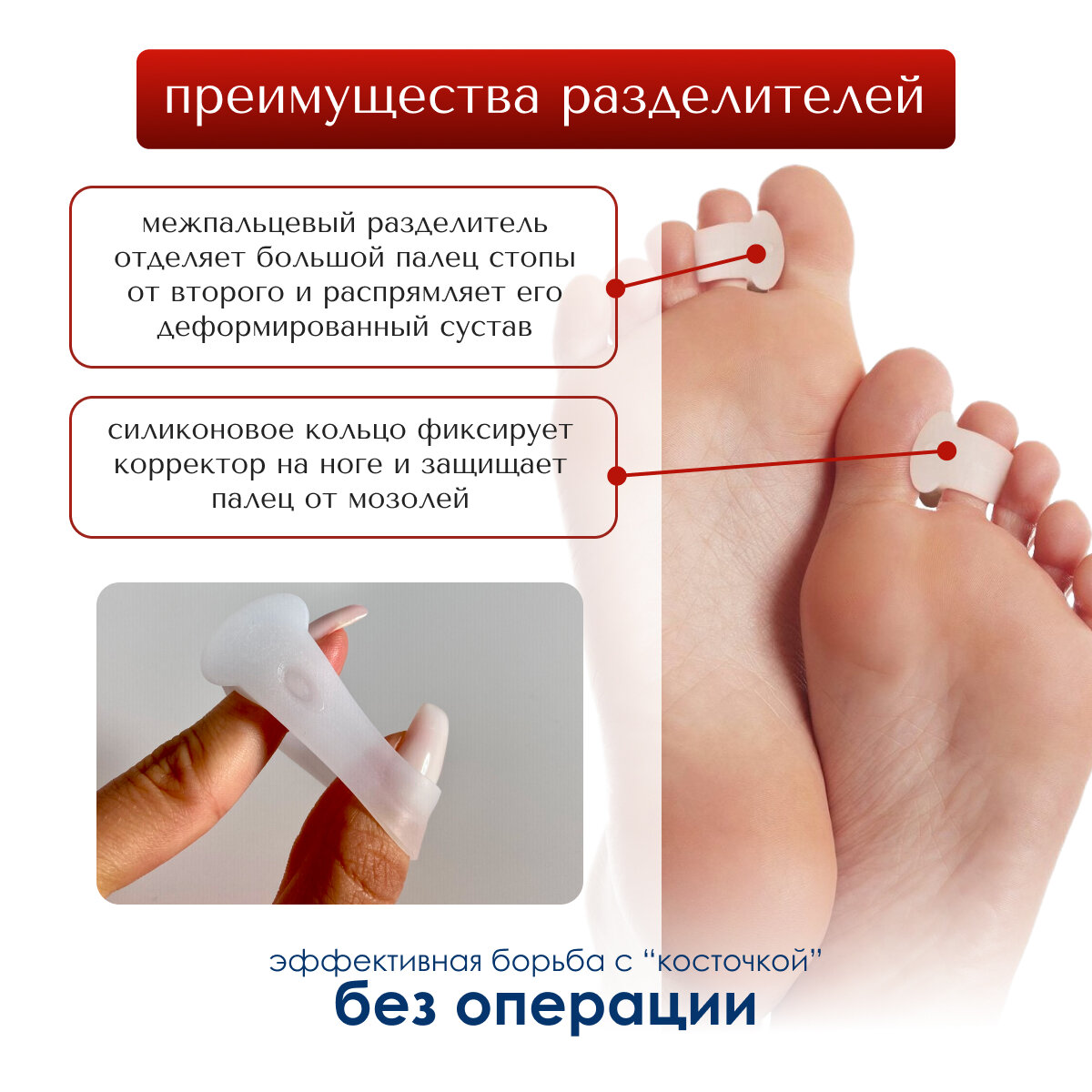 Межпальцевый разделитель для мизинца от мозолей, Корректор для пальцев ног, Фиксатор силиконовый