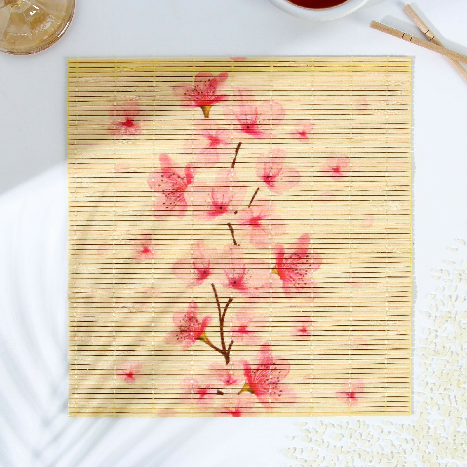 Циновка Макису для приготовления суши и роллов/коврик бамбуковый «Цветы», 22 х 24 см