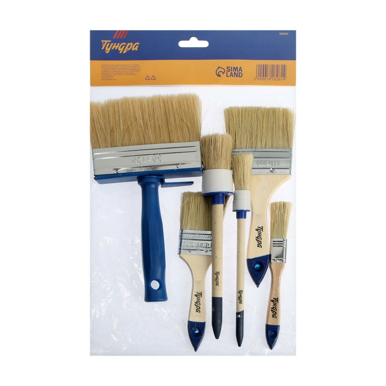 Купить Набор кистей тундра, плоские 3/4", 2", 3", круглые №2, №8, макловица 30х120 мм, 6 шт.