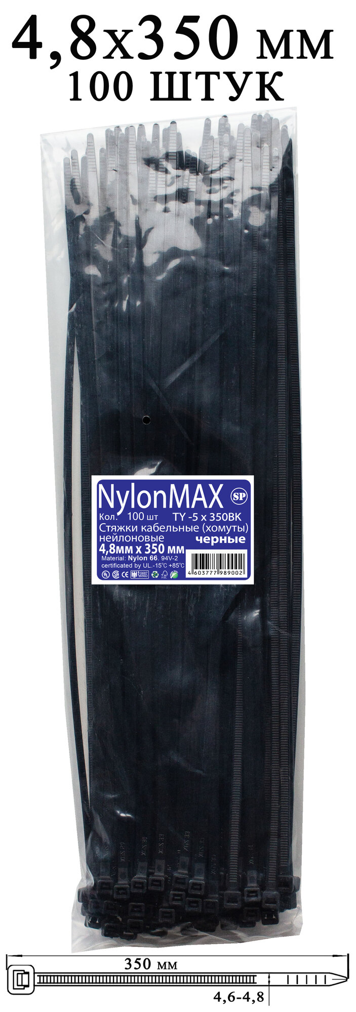 Стяжка кабельная (хомут) нейлоновая NylonMAX, 5х350, черный, 100 шт.