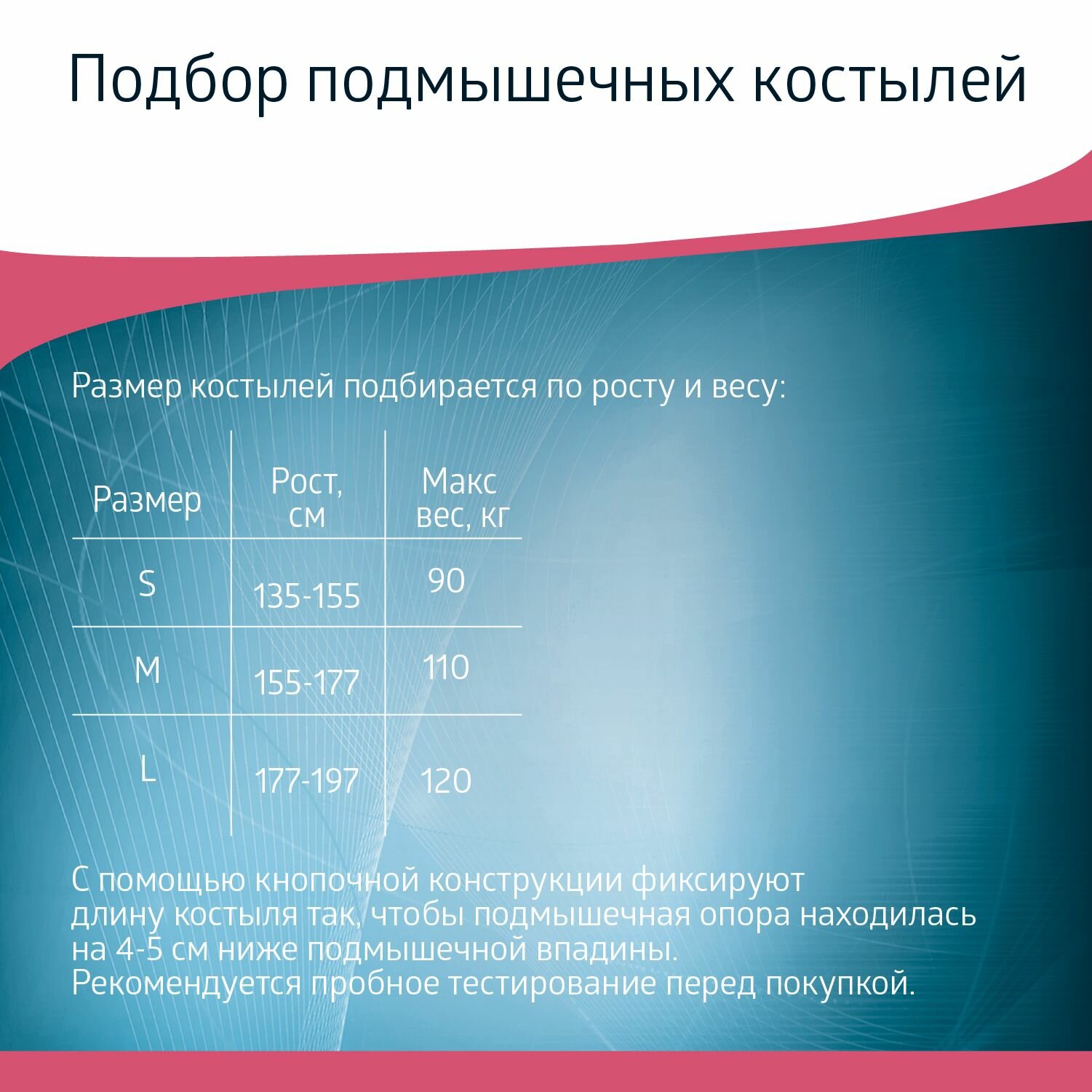 | Тип костылей | подмышечные |
