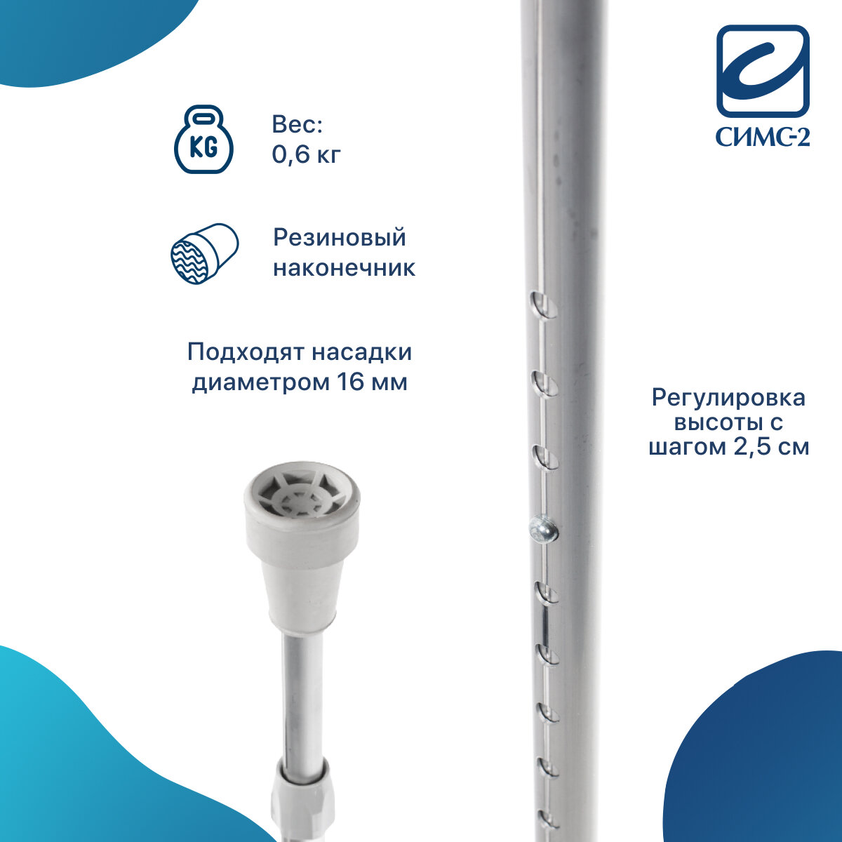 | Дополнительная информация | высота от манжета до ручки - 22 см; высота от ручки до пола - от 77 до 97 см |