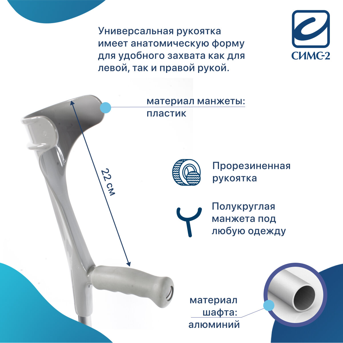 | Тип костылей | С опорой под локоть (канадки) |