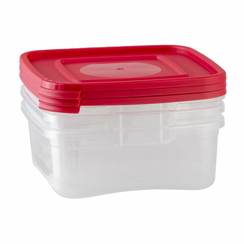 Купить Контейнер пищевой 0.7л комплект 3шт ланч бокс каскад квадро 9х14х14см прозрачный/красный, 64001, 436400165