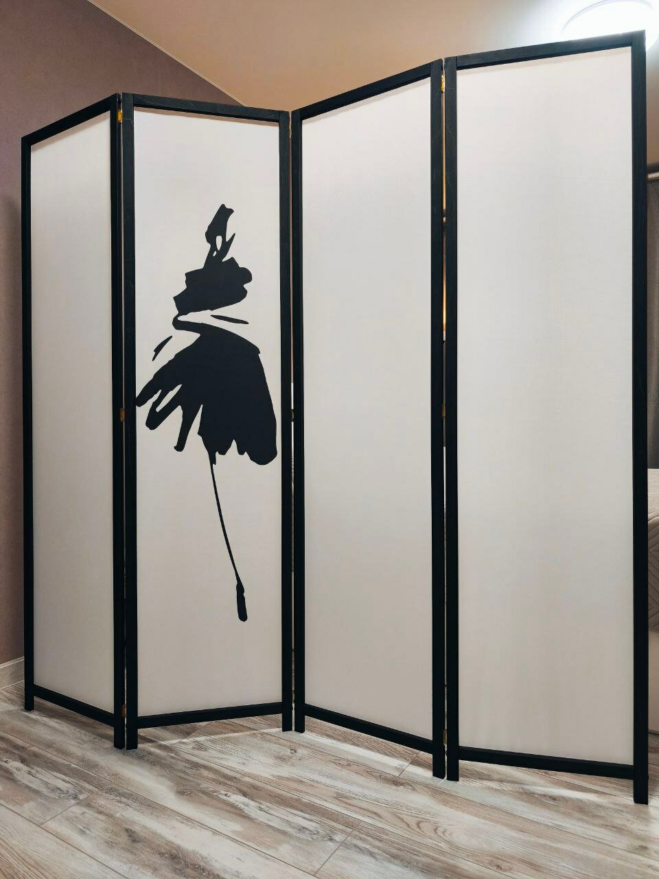 Ширма Fashion Style - 4 секции. Лёгкая тканевая перегородка в чёрном каркасе от бренда "ШИРМЫ. РФ". Высота 180см