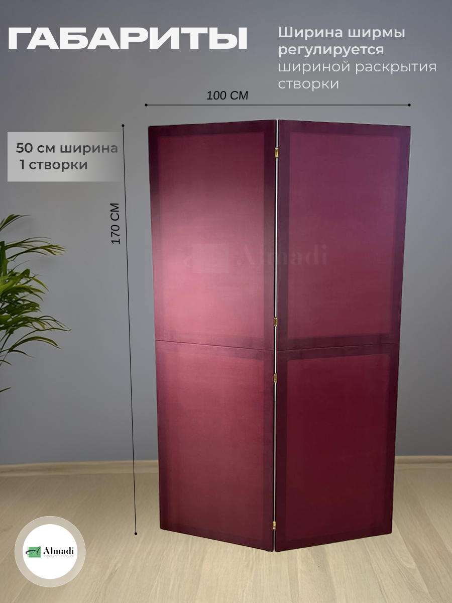 Купить Ширма перегородка для зонирования комнаты бордовая 2 створки модульная