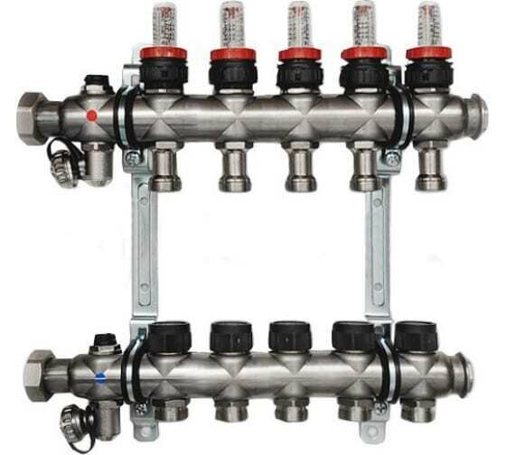 Коллекторный блок из нержавеющей стали 1" с регулирующими и балансировочными клапанами / 5 выходов Valfex арт. VF.582.0605