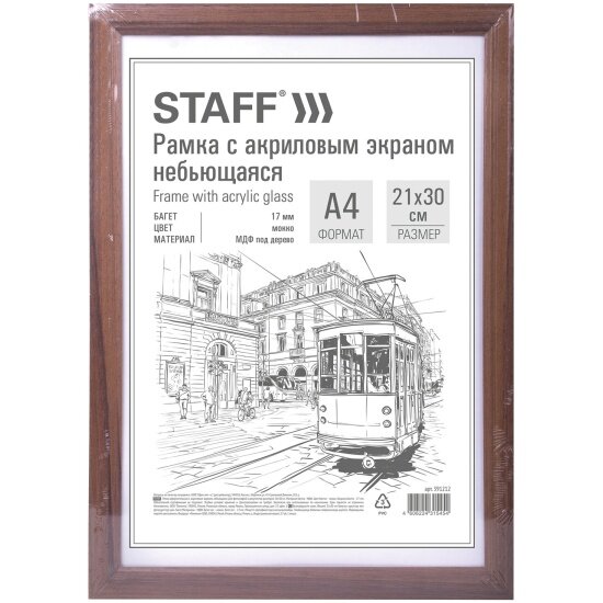 Купить Рамка Staff небьющаяся 21х30 см, МДФ под дерево, багет 17 мм, мокко, акриловый экран, "Carven", 391212