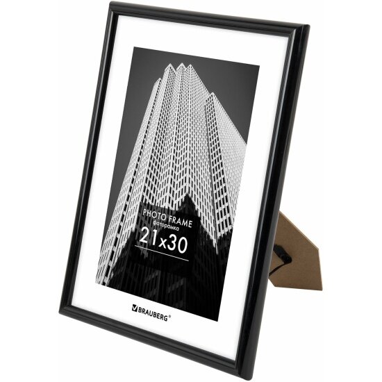 Рамка 21х30 см небьющаяся, багет 14 мм, пластик, BRAUBERG "Original", черная, 391229