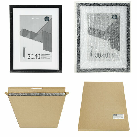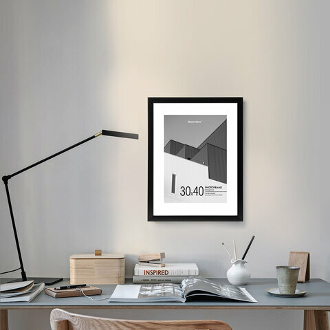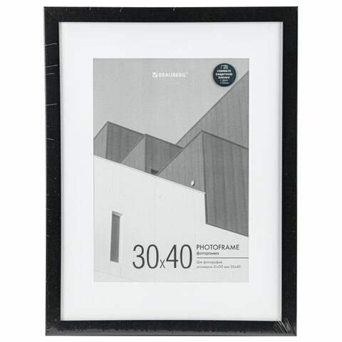 Рамка (фоторамка) для фото, фотографий, картин, грамот на стену А3 30х40, с паспарту А4 21х30, небьющаяся, багет, пластик, Brauberg, черная, 391277