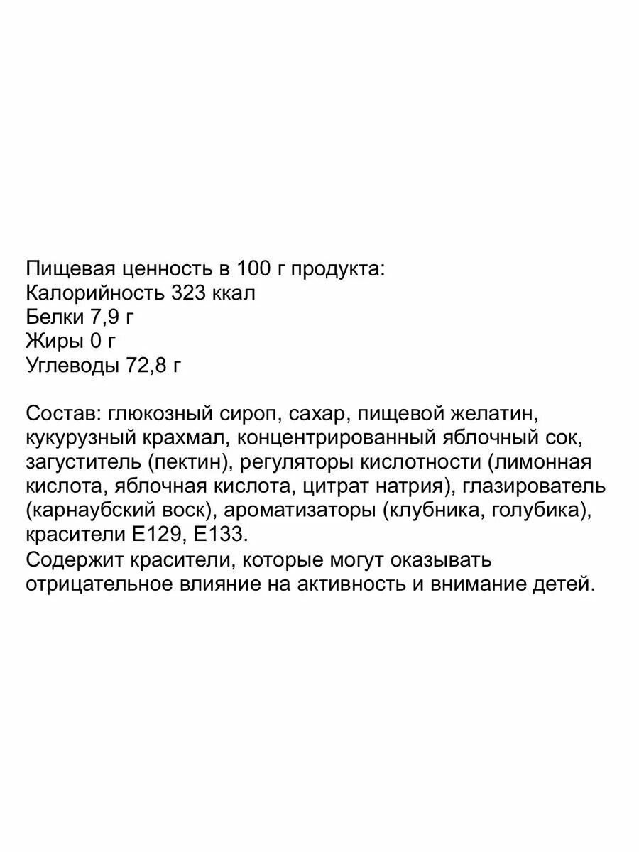 | Вид мармелада | жевательный / фигурный |