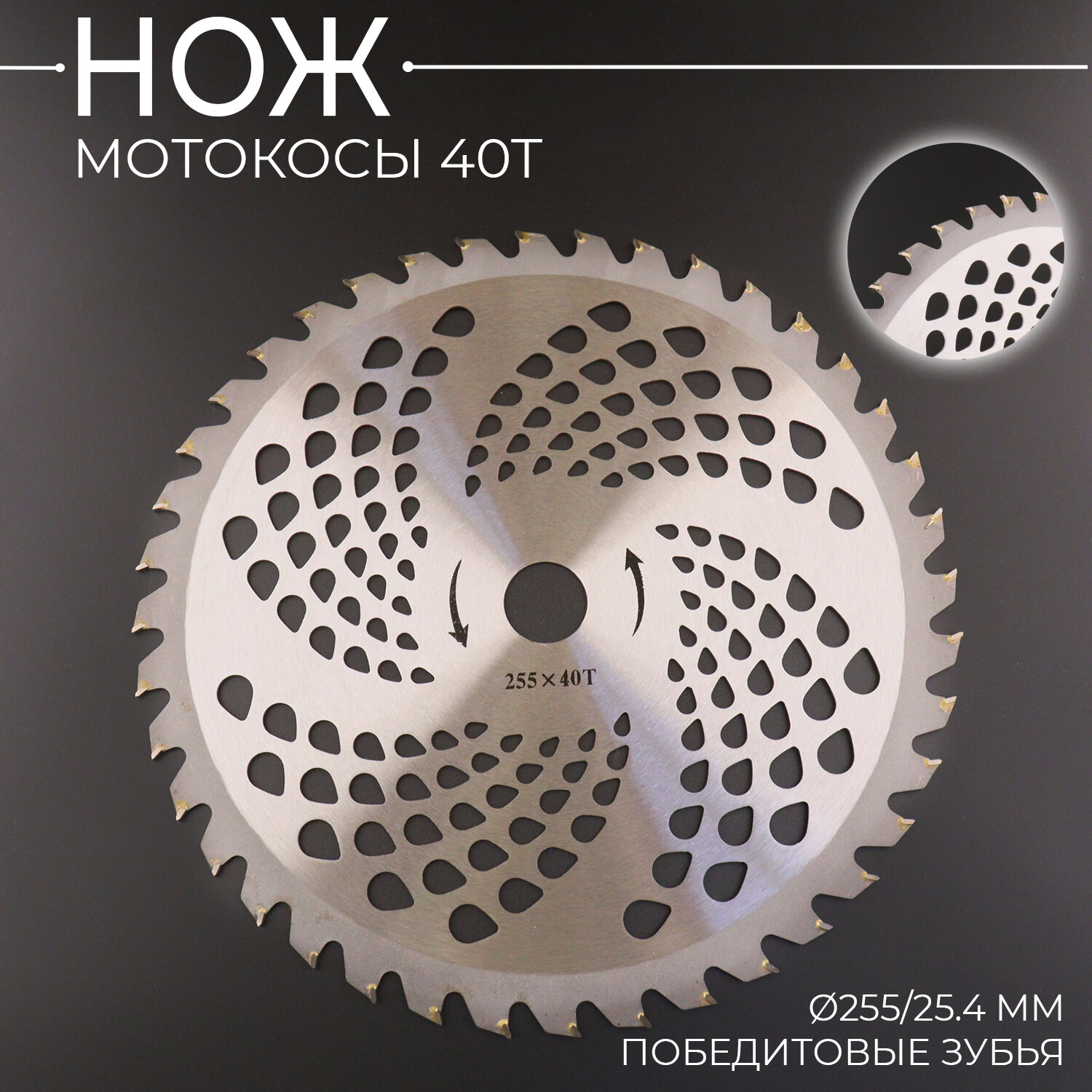 Нож мотокосы 40T (Ø255/25.4 mm) (победитовые зубья) интересное: