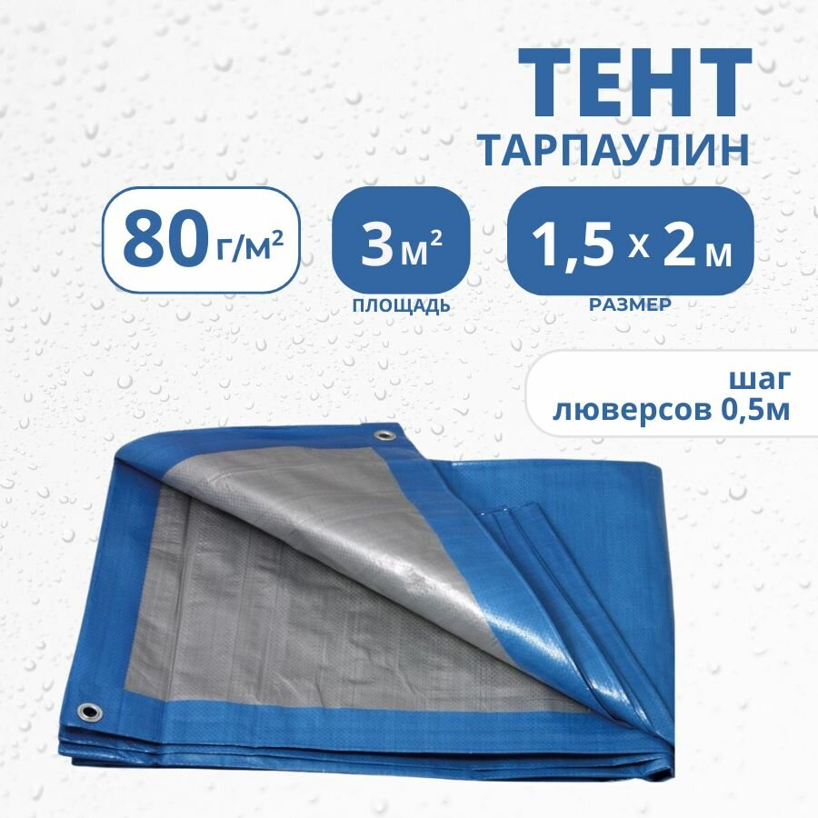 Купить Тент тарпаулин Тарпикс укрывной 1,5х2м 80 г/м2 с люверсами, баннер, навес, полог туристический, строительный, универсальный, для автомобиля и сада