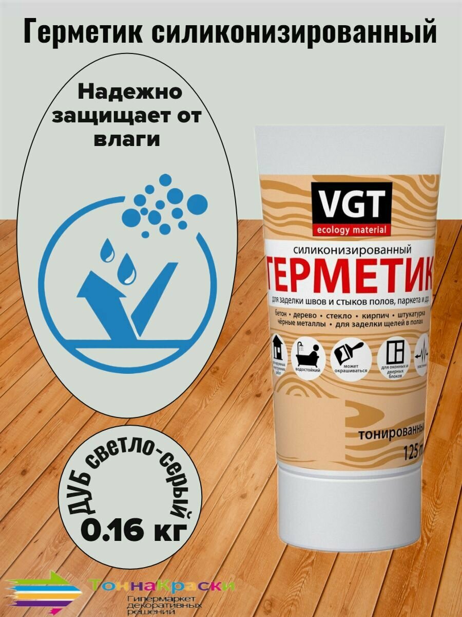 Герметик силиконизированный ВГТ дуб светло-серый 0,16кг