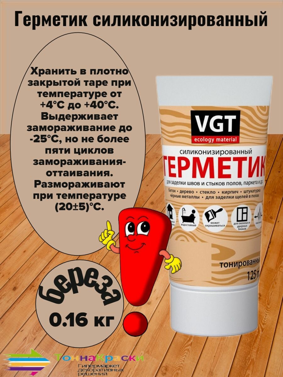 Герметик силиконизированный для наружных и внутренних работ VGT, 160 г, береза
