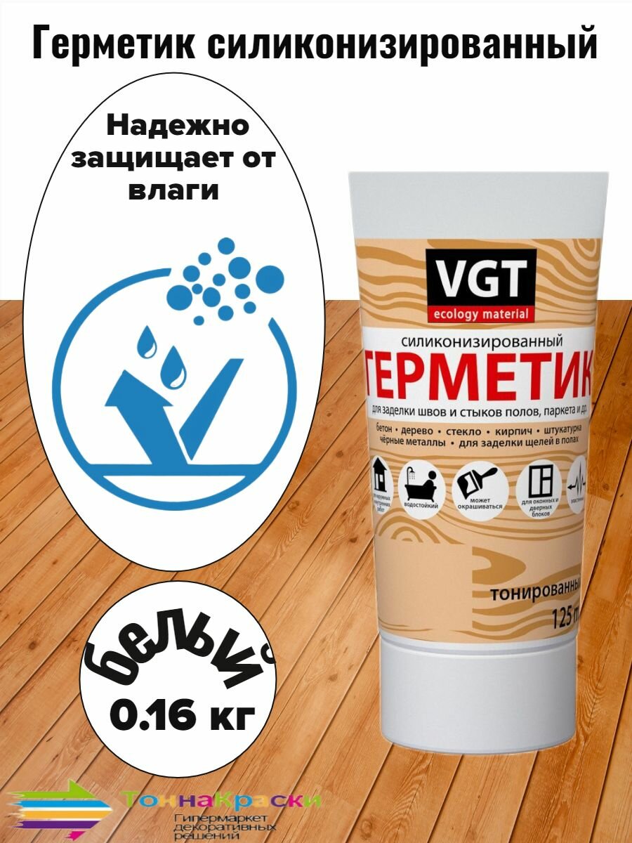 Герметик силиконизированный для пола и паркета VGT туба (125мл) белый