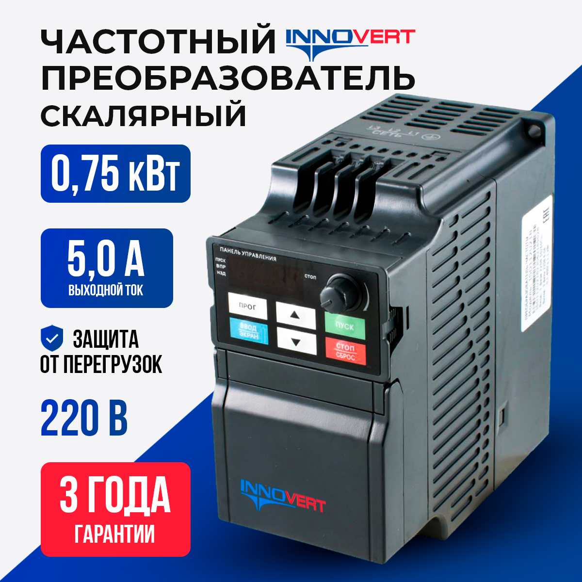Частотный преобразователь 0,75 кВт вх:1ф x 220В/вых: 3ф х 220В INNOVERT ISD751U21B. Ток 5.0 А интересное: