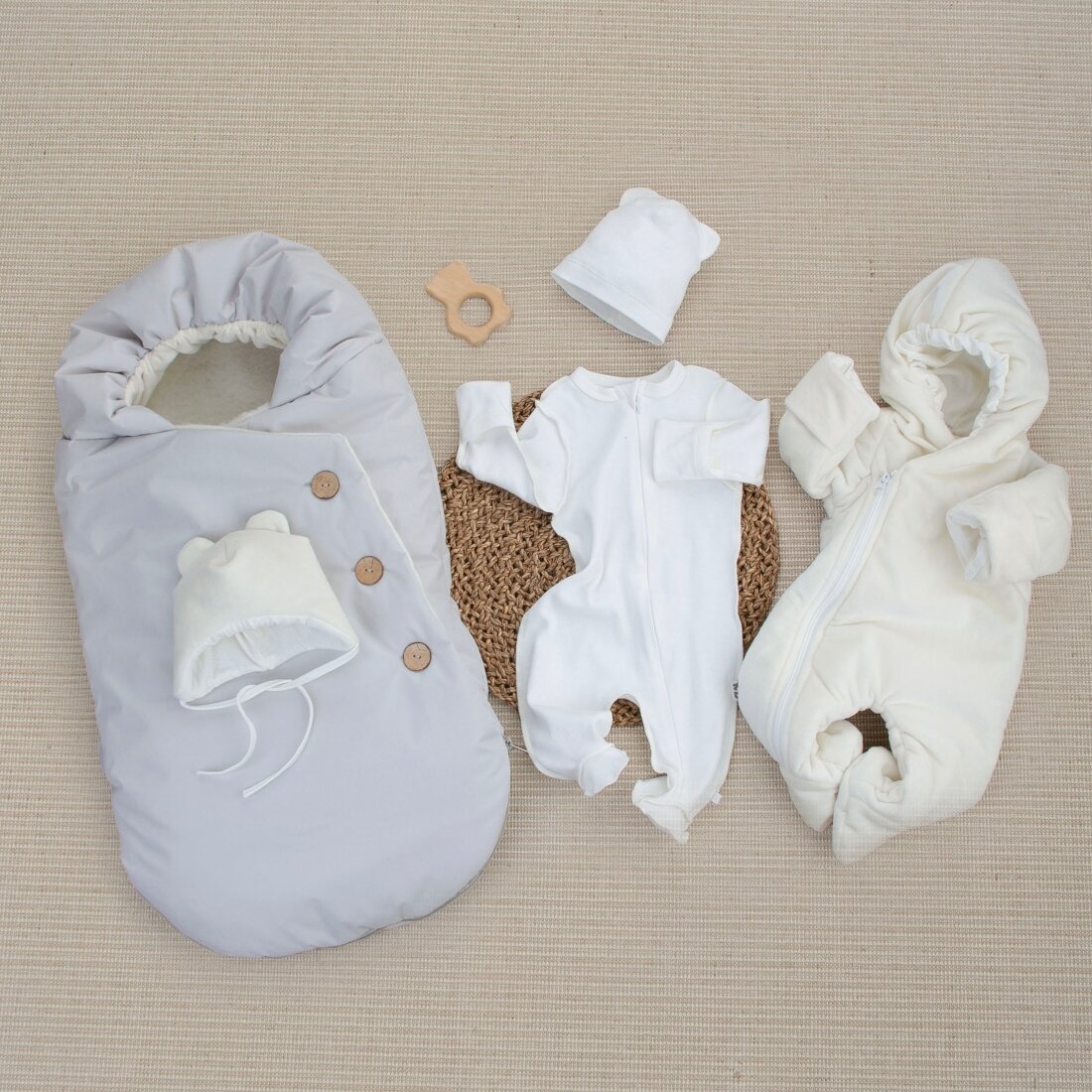 Комплект на выписку 5 предметов "Вельвет", зимний, серый жемчуг интересное: