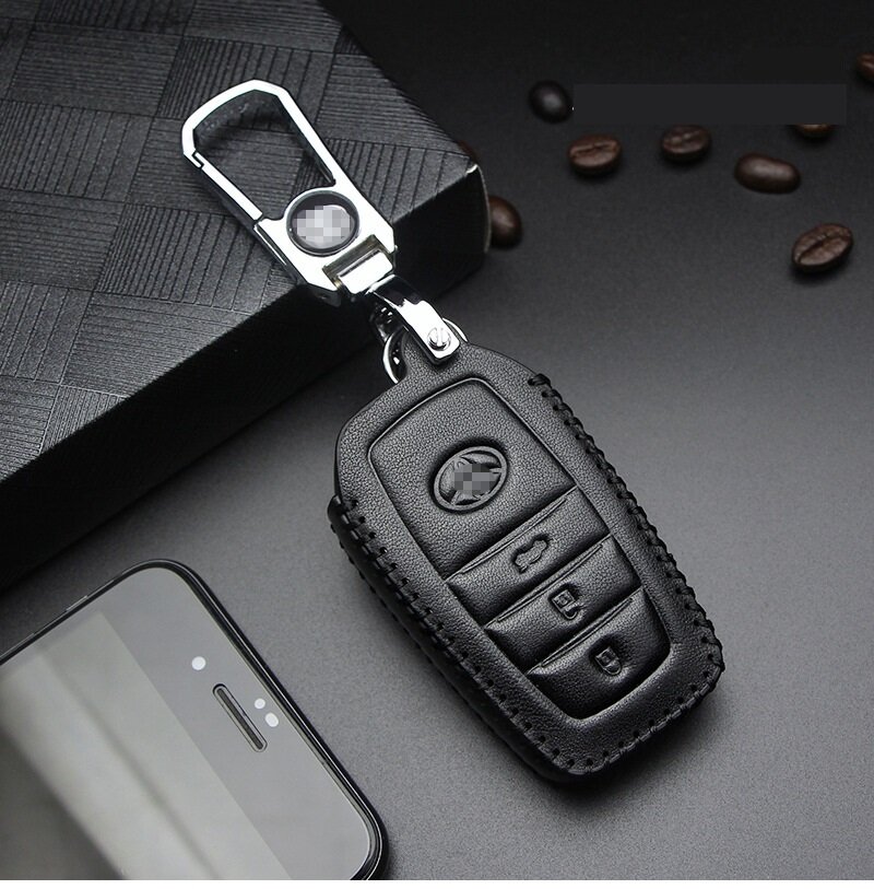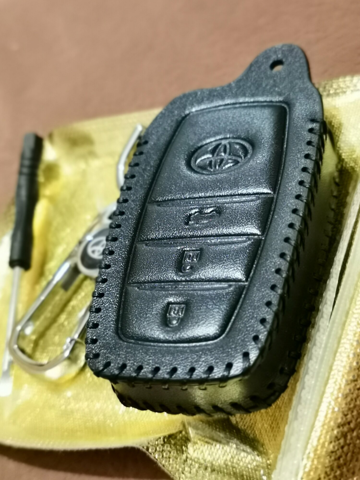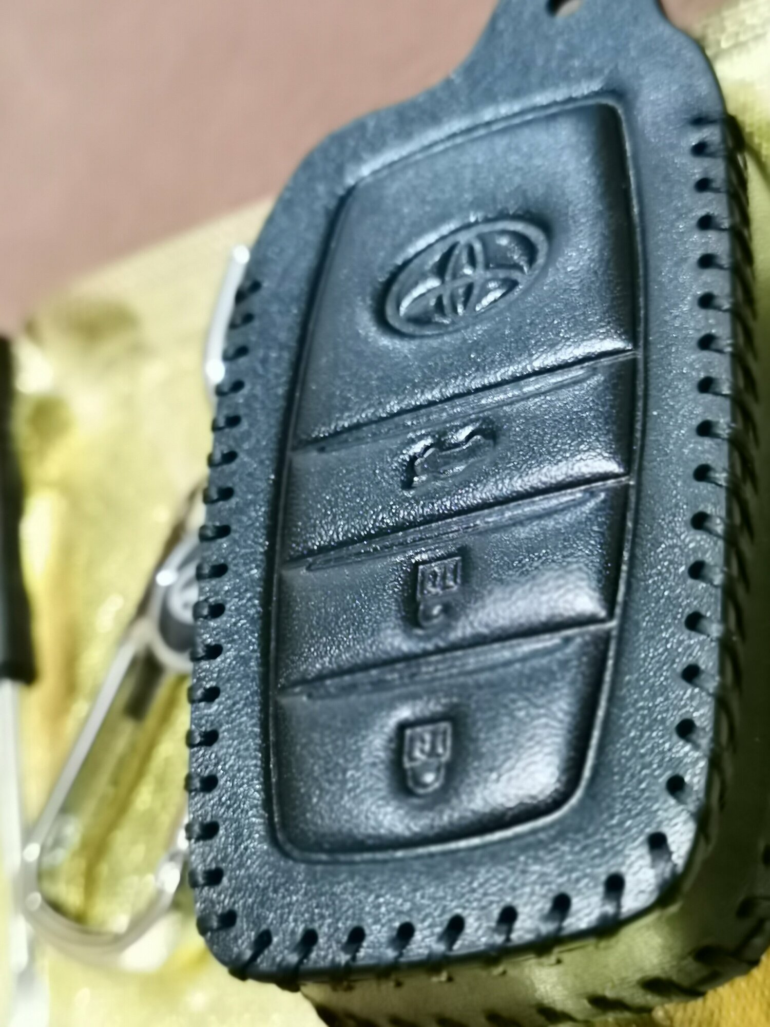кожаный чехол на ключ тойота ,чехол для ключа TOYOTA,защитный чехол для смарт ключа с черной нитью