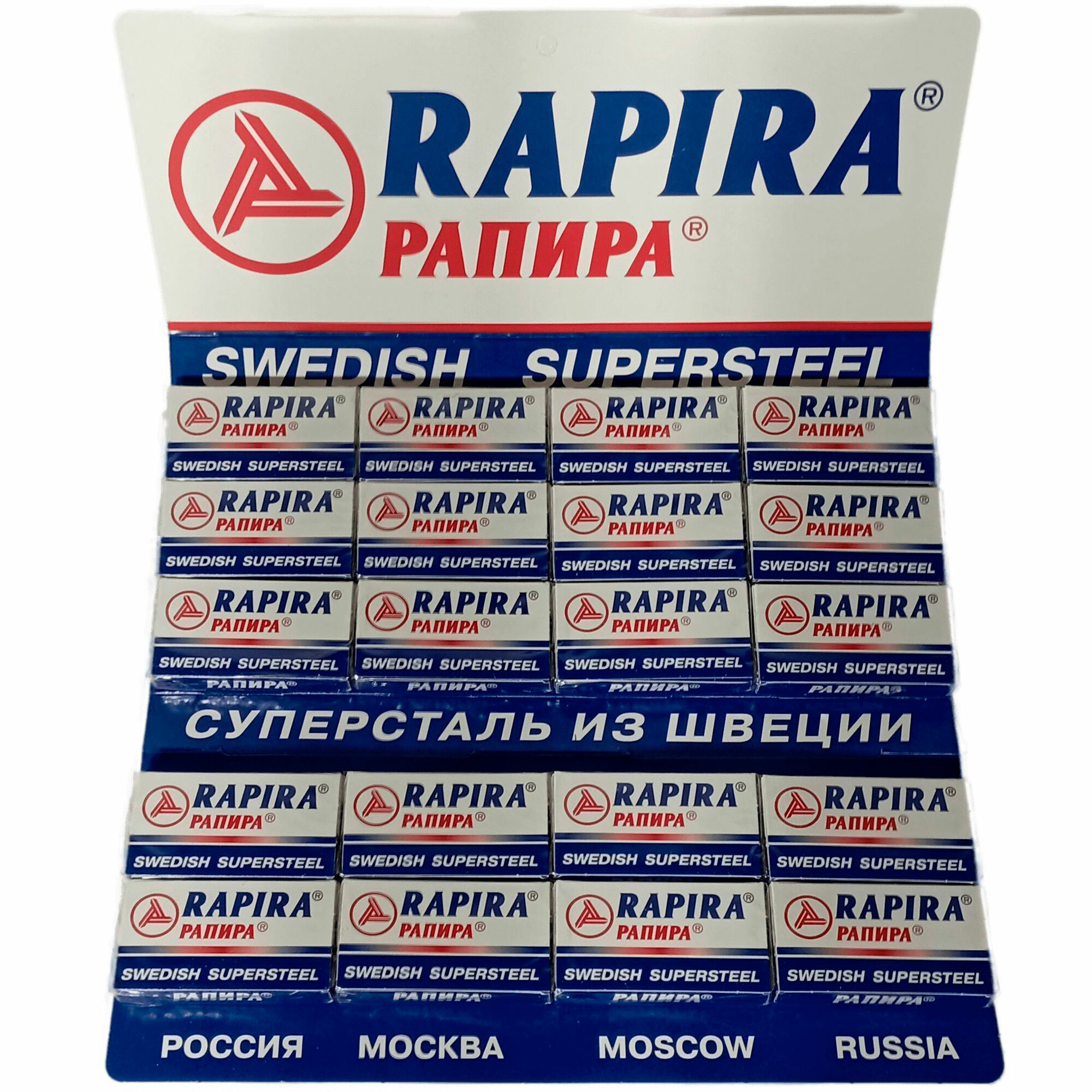 Лезвия RAPIRA SWEDISH SUPERSTEEL, 20 пачек по 5 лезвий (100 лезвий), двусторонние классические для Т-образного станка интересное: