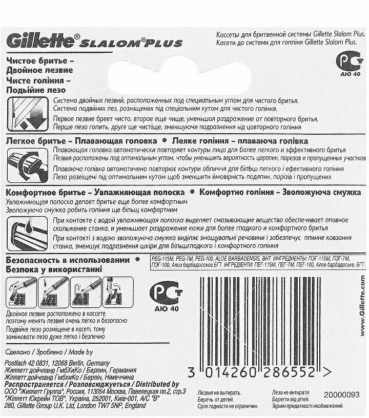 Ниже Вы можете прочитать отзывы на Gillette Slalom Plus (подходит к Schick Ultrex) 6 шт, кассеты для бритья, ознакомится с подробными характеристиками, посмотреть интересные обзоры и фотографии на Gillette Slalom Plus (подходит к Schick Ultrex) 6 шт, кассеты для бритья.