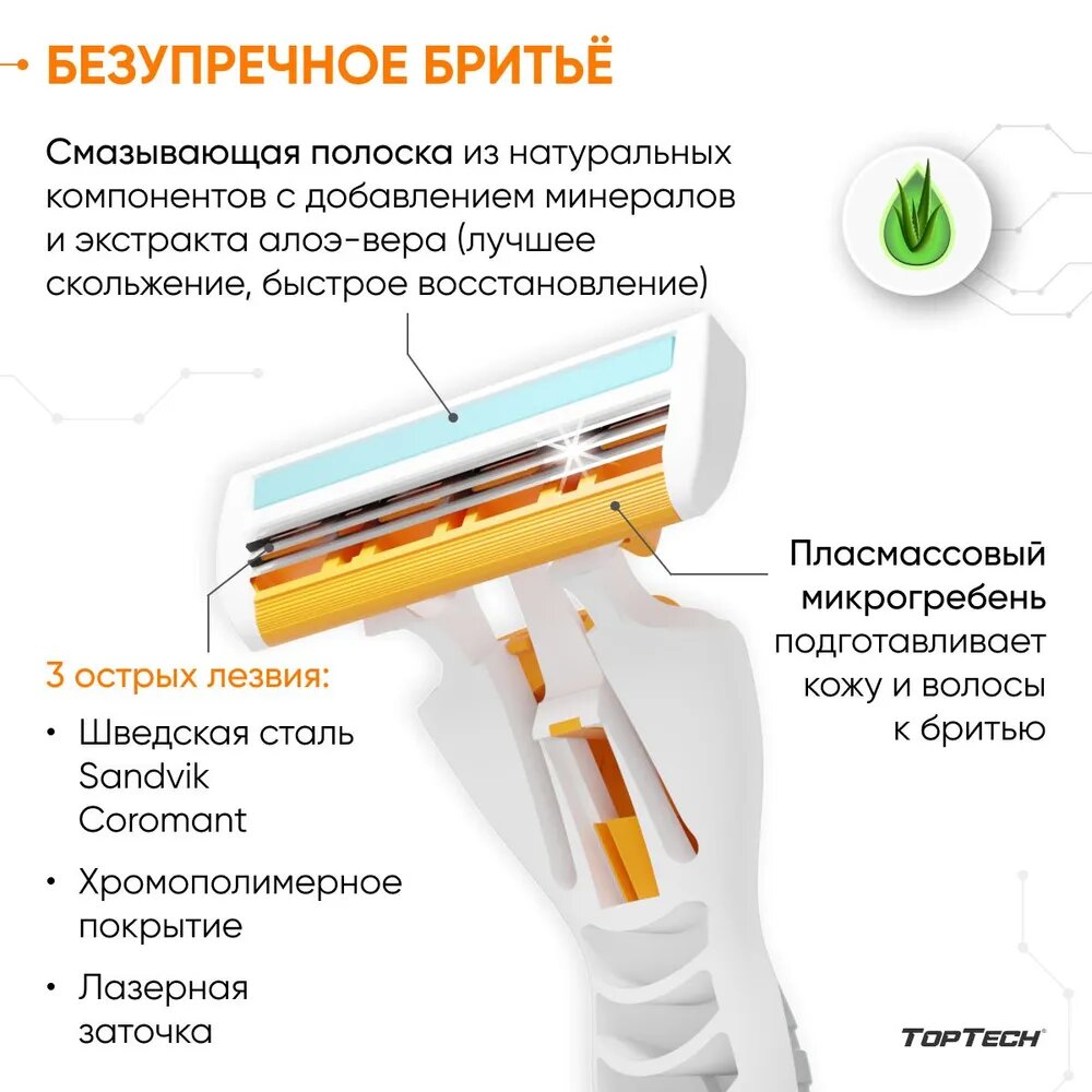 Купить Бритва для мужчин TopTech Basic 3 + сменные кассеты 31 шт, 3 лезвия. Станок для бритья мужской.