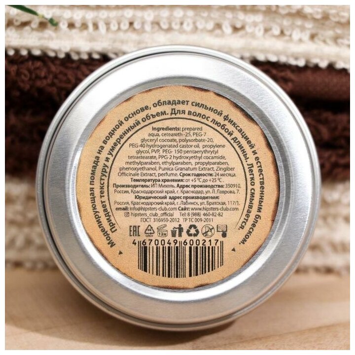 | Комплектация | Помада на водной основе для укладки волос Hipster Aquatic pomade ultra, классическая, 33 мл |