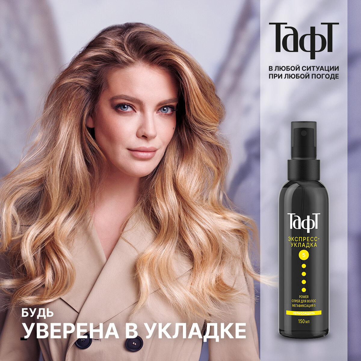 Тафт Спрей для укладки волос Power Экспресс-укладка, экстрасильная фиксация, 150 г, 150 мл интересное: