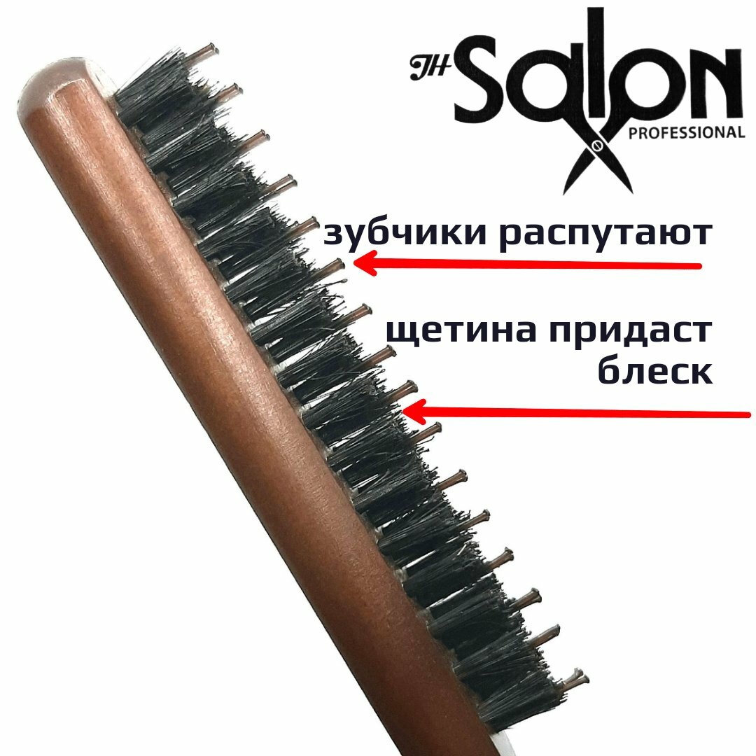 Купить Расческа щётка деревянная с щетиной кабана для начеса зализа и укладки пучка