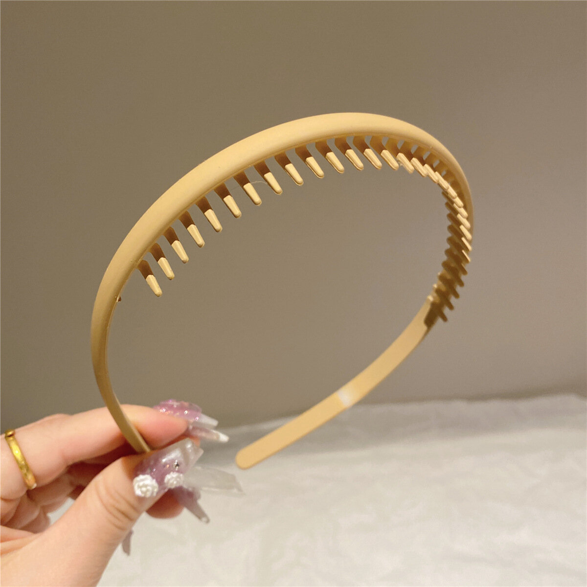 Ободок для волос 1 шт., бежевый каучук, ширина 0,8 см