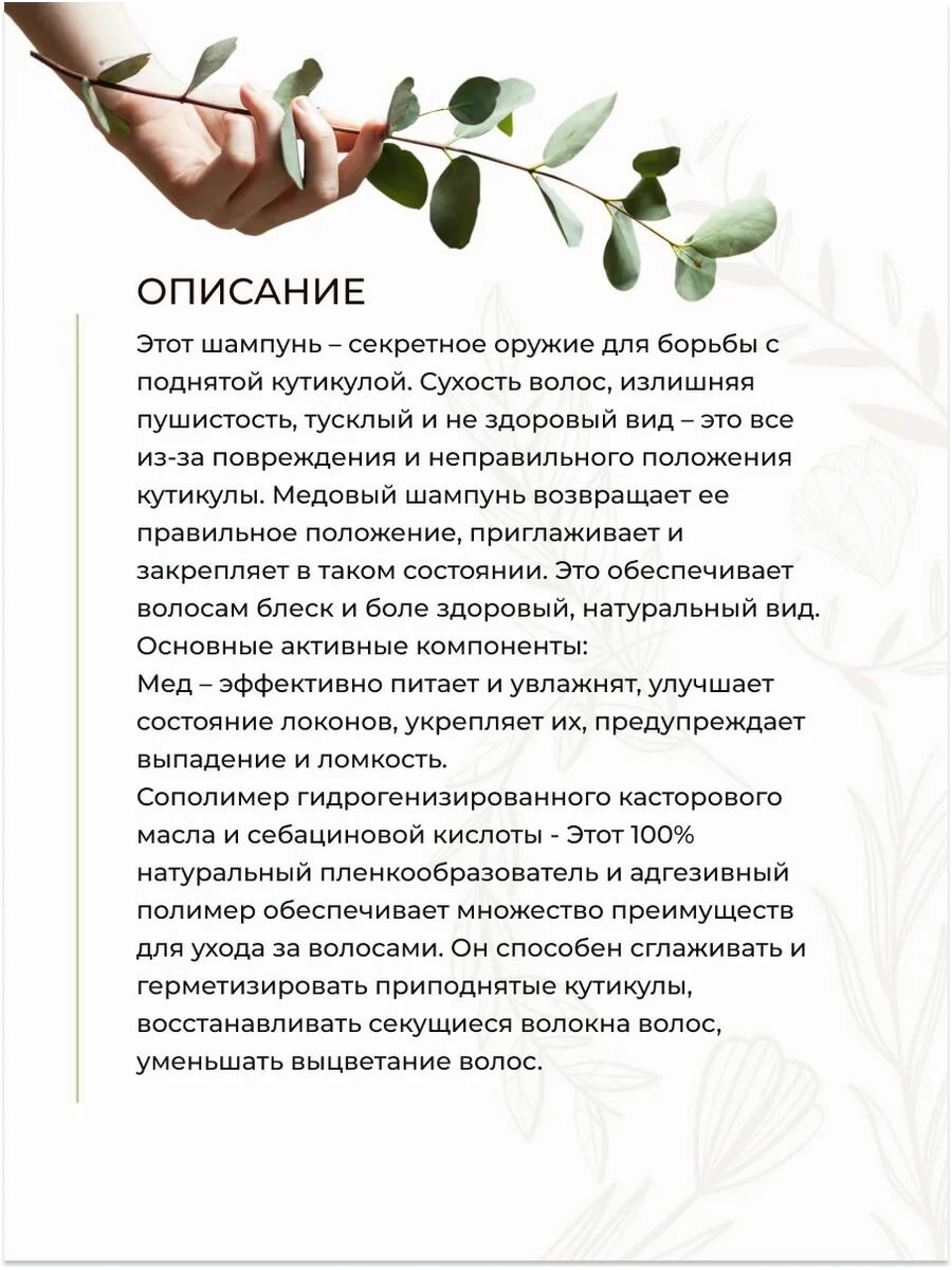 Твердый шампунь Медовый питание и возвращение здоровья волос, 55 г интересное: