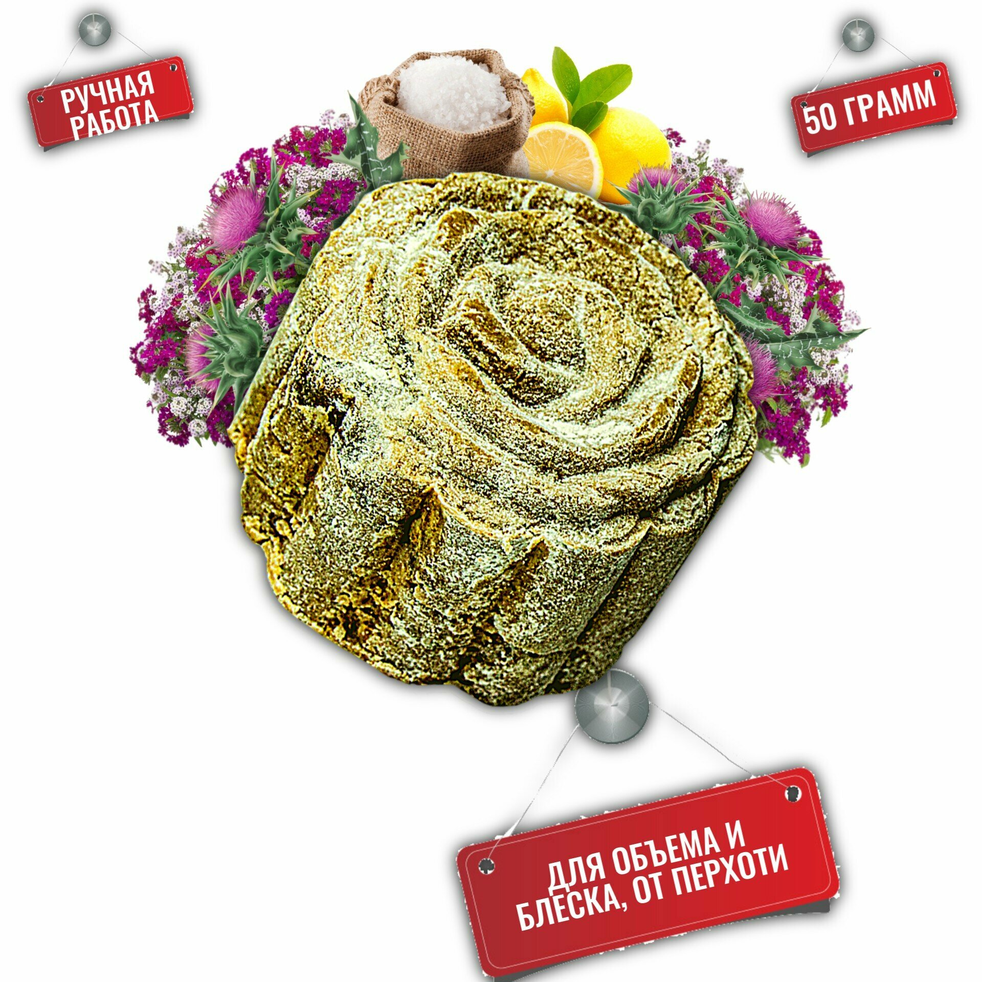 Купить Твердый шампунь для волос натуральный с морской солью и лимоном