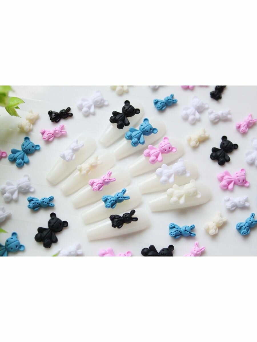 Купить 3д фигурки для ногтей медведи зайцы, Маникюр_медведи_зайцы 20 штук набор фигурок
