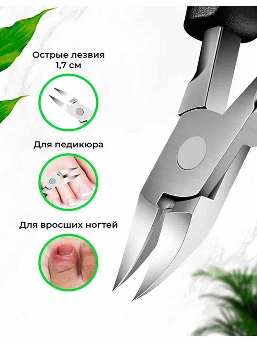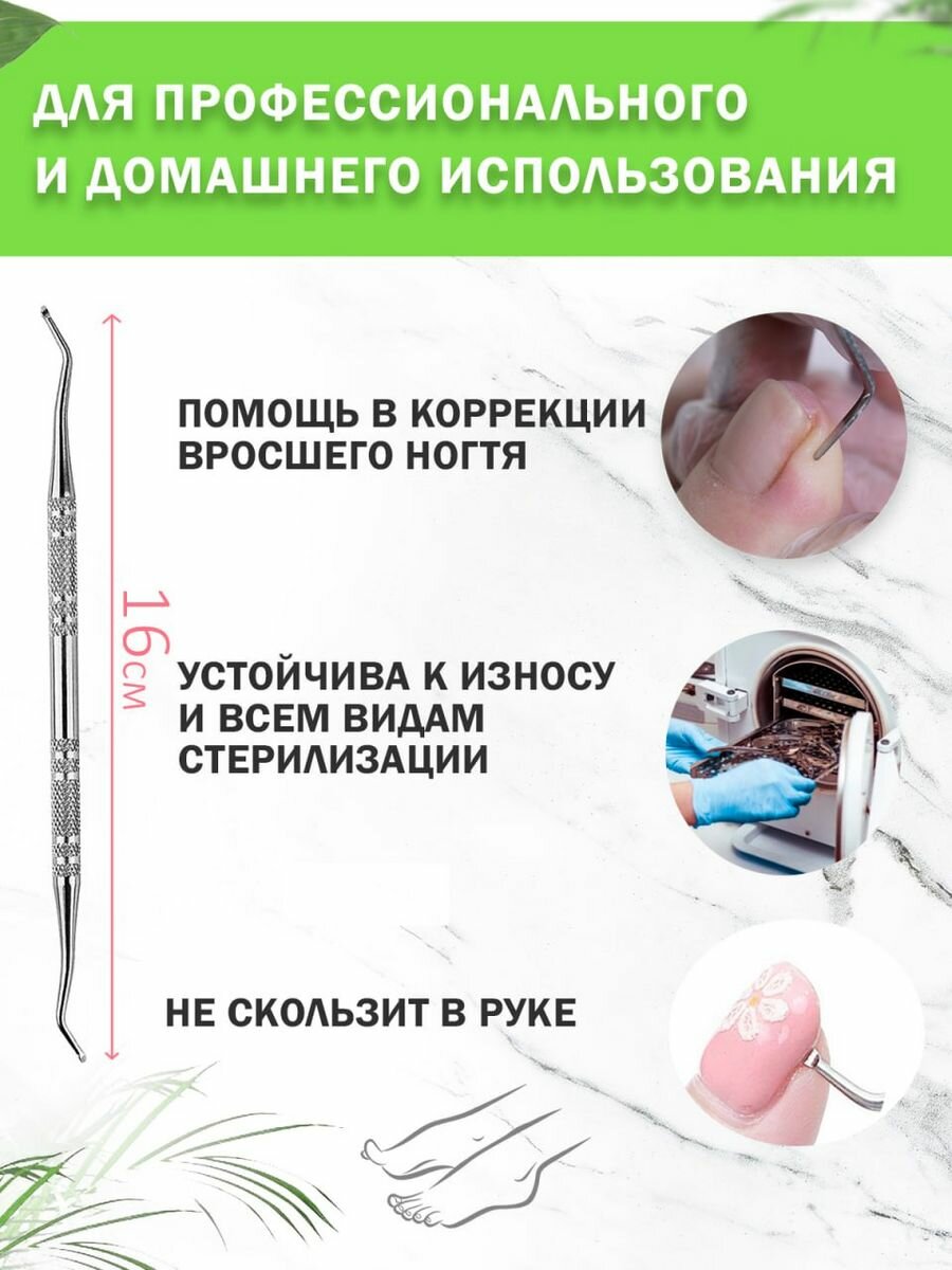 Комплект от вросшего ногтя QuisLife: кусачки для ногтей педикюрные, кюретка двусторонняя, полоски-корректоры 10 шт. интересное: