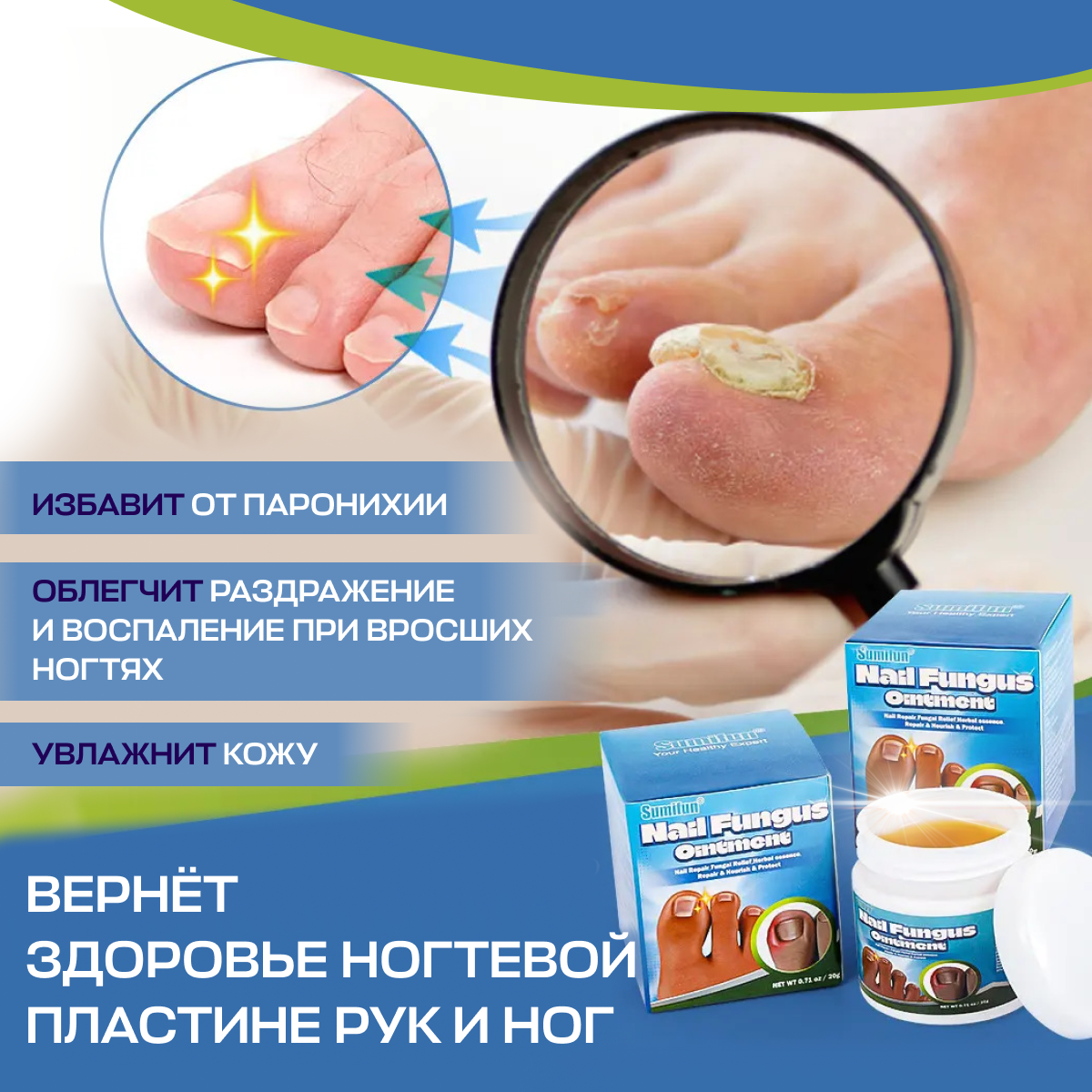 Средство от грибка ногтей на ногах Sumifun / Крем для борьбы с несовершенствами / Мазь для ухода за ногами против онихолизиса