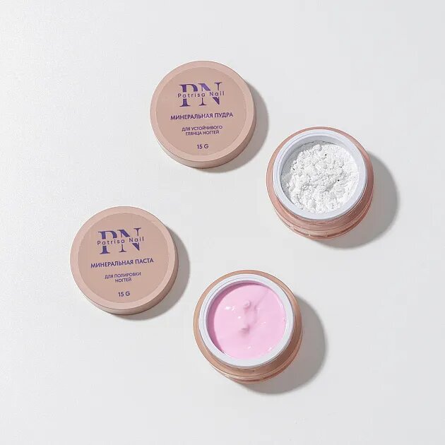 | Способ применения | 1. Предварительно сделайте маникюр, далее возьмите полировочный блок розовой стороной и отшлифуйте поверхность ногтевой пластины. 2. Наберите минеральную пасту размером с горошину и выложите на кичин, бережно втирайте по всей поверхности ногтевой пластины. Уберите остатки пасты. 3. Апельсиновой палочкой наберите минеральную пудру для устойчивого глянца, распределите по ногтю и полируйте поверхность ногтевой пластины гладкой стороной блока до необходимого блеска или используйте кичин, затем удалите остатки пудры. |