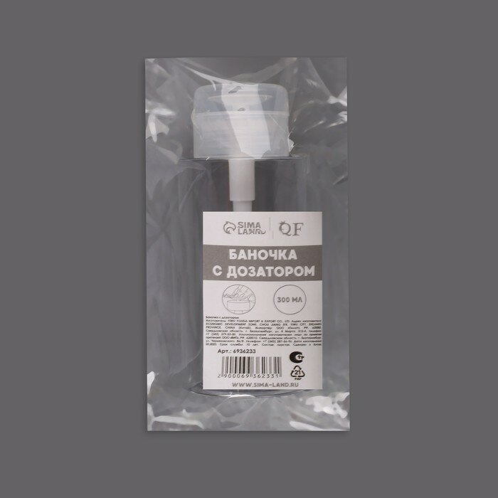 Флакон с помпой, 300 мл, белый, прозрачный интересное: