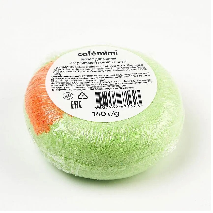 Cafe mimi Гейзер для ванны Персиковый пончик с киви, 140 г интересное:
