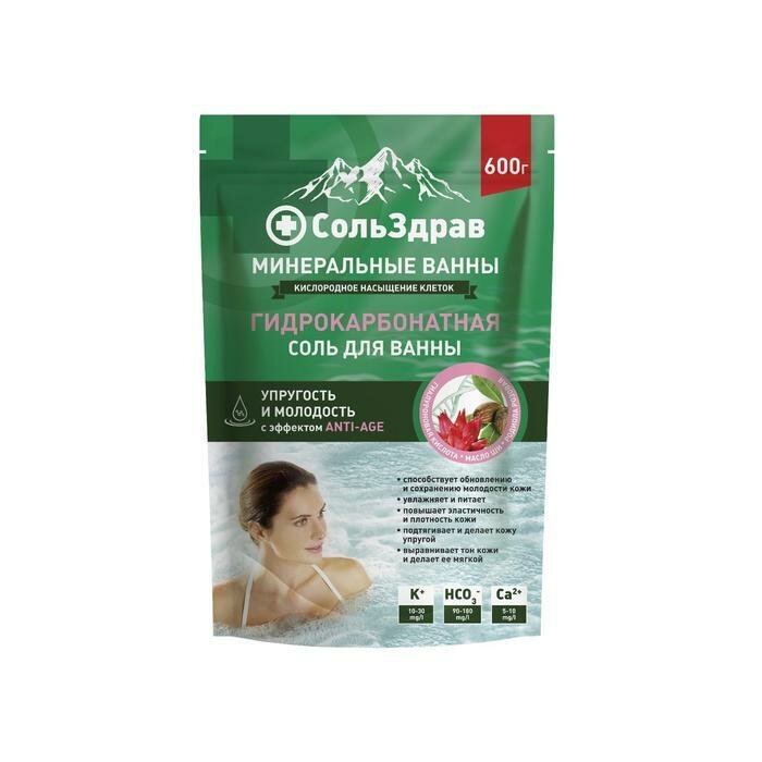 Купить Naturaлист, минеральные ванны, гидрокарбонатная соль для ванны "Упругость и молодость", 600 гр