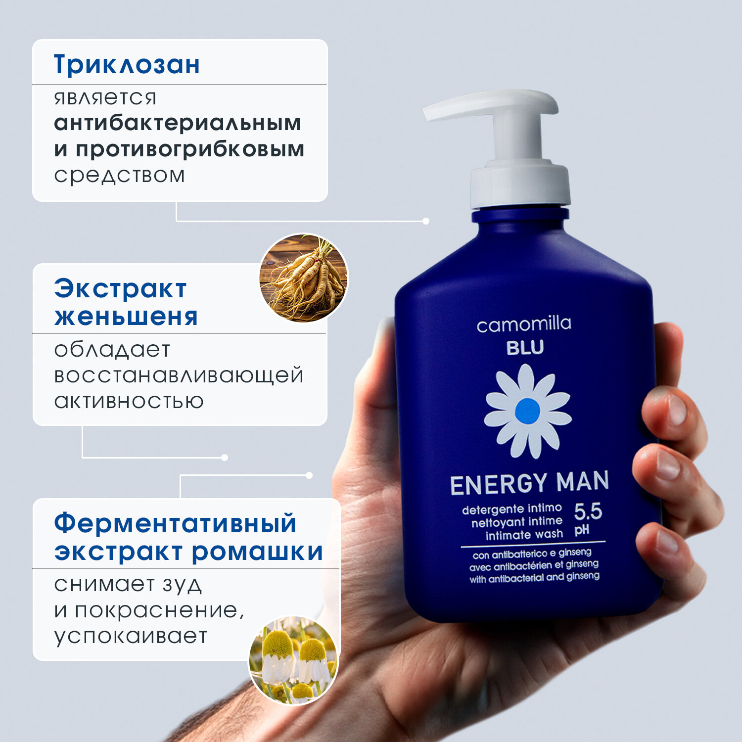 Купить Гель для интимной гигиены Camomilla Blu ENERGY MAN для мужчин, 300 мл (2 шт)