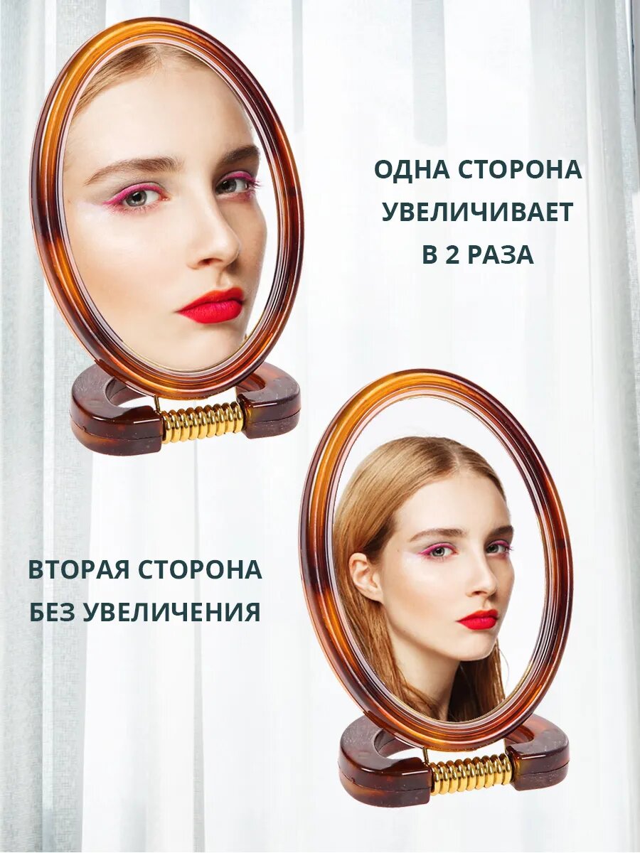 Зеркало настольное овал двустороннее разного увел10х6,5см пл интересное: