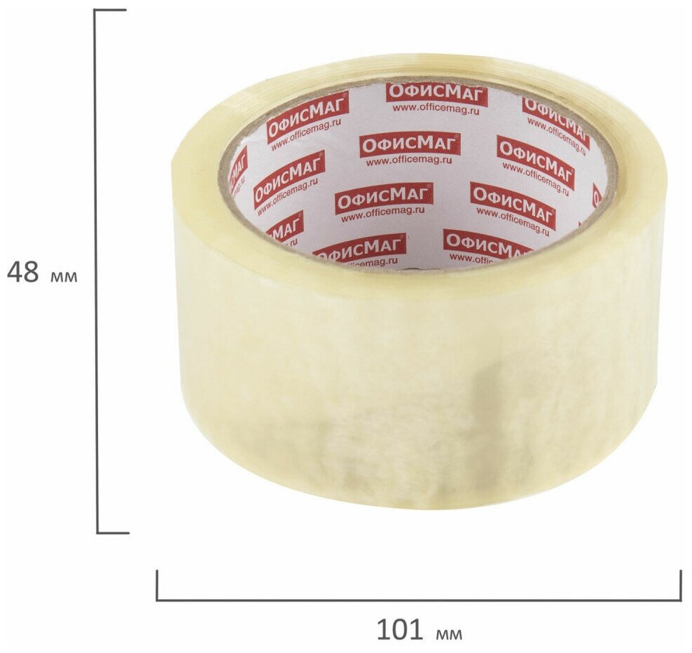 Клейкая лента упаковочная Офисмаг 48 мм х 60 м, 45 мкм, прозрачная, 6 шт/уп