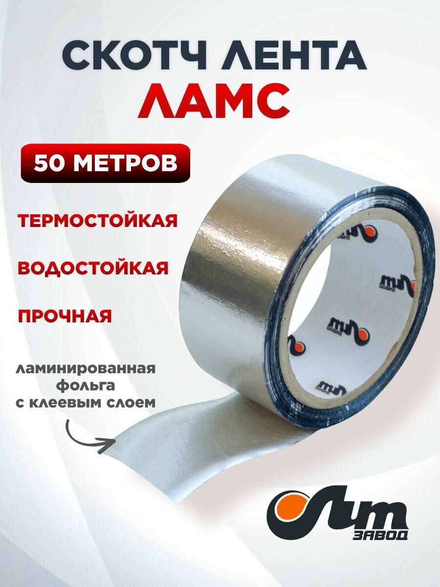 Скотч лента ламс алюминиевая монтажная самоклеящаяся 50мx50мм тилит, водостойкая, термостойкая, 1шт/уп интересное: