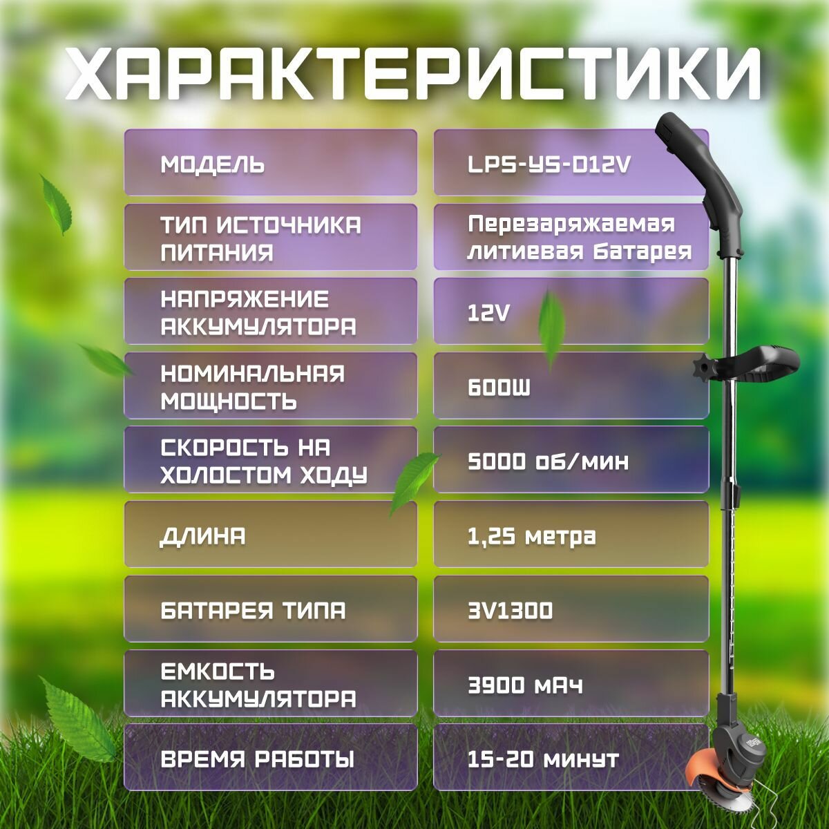 Кусторез ARRIS, аккумуляторный, 5000 об/мин, Li-Ion, режущий элемент нож/диск интересное: