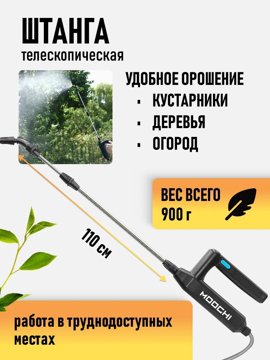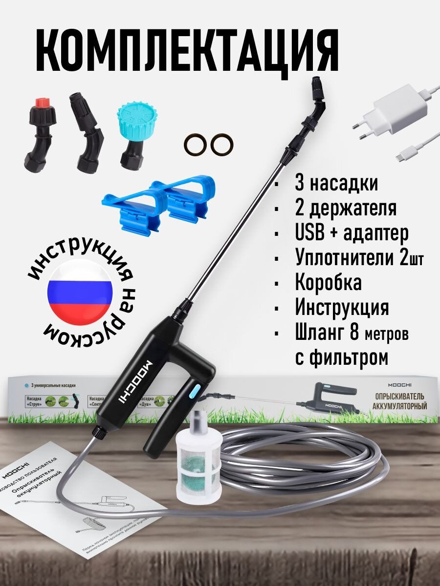 Опрыскиватель садовый MOOCHI, Li-ion аккумулятор, 2 Ач, 7,4 В, длина шланга 8 м интересное: